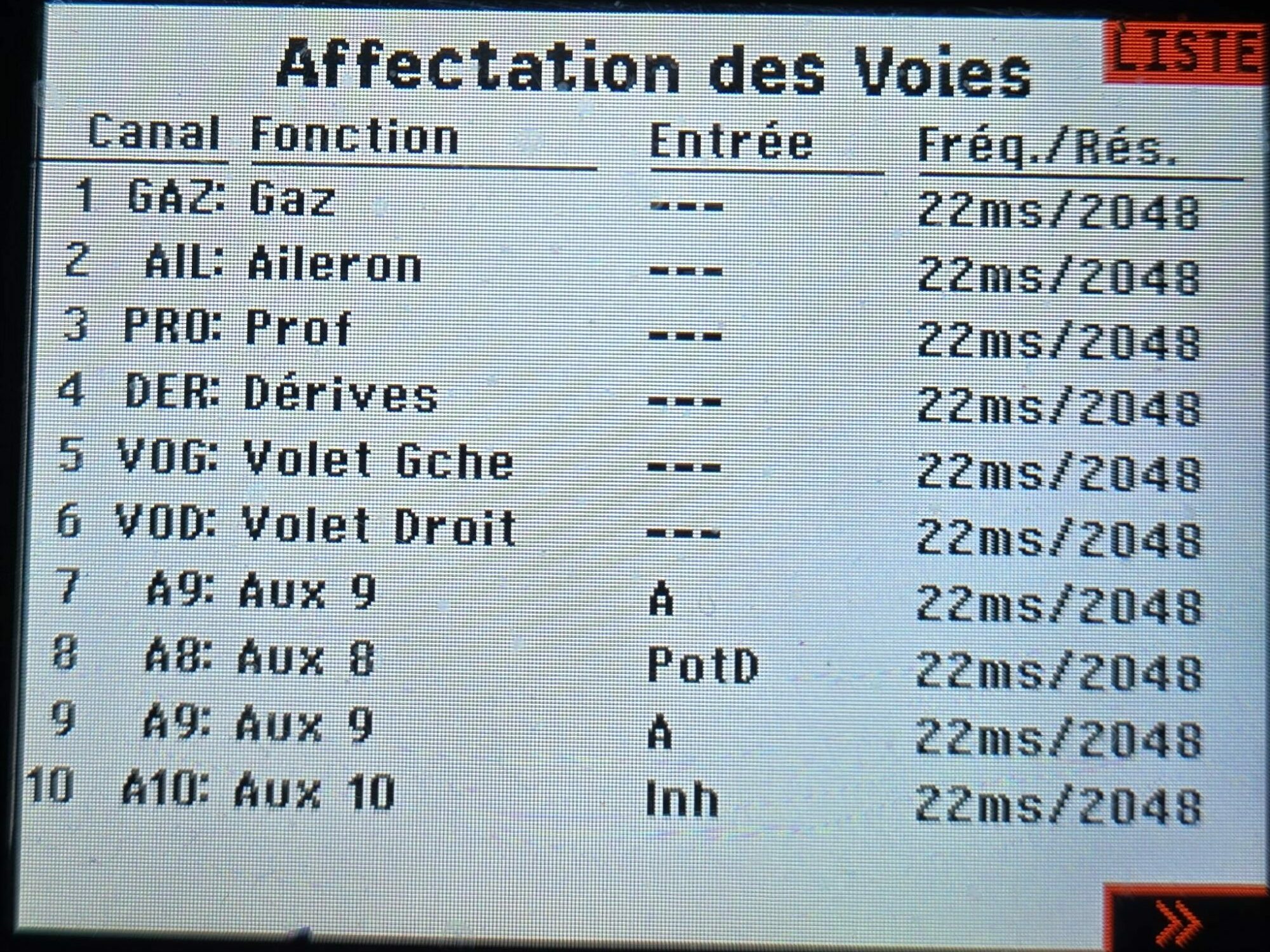 Deuxième point , le gain « maitre » sur les 3 canaux , est piloté par un bouton, ici le potentiomètre D sur le canal 8 du récepteur.
