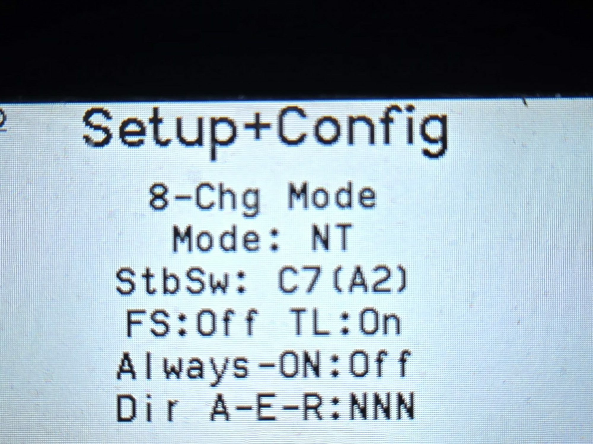 L’option choisie pour le fonctionnement ici est « NT », pour normal Tail. Le bouton A permet maintenant de passer sur le mode stabilisé, dans sa position -100%.